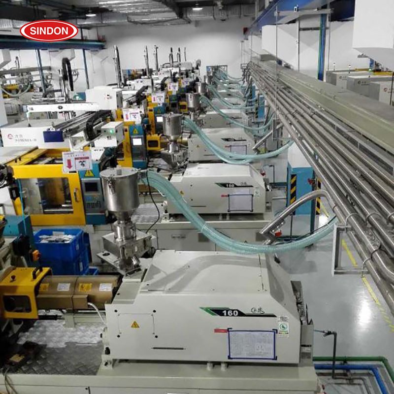 高效率的優點:中央供料系統可以自動向多個房間的任何一臺注塑機供應多種原料。在這里,它可以完成多項任務,如原材料的干燥處理,配色處理,粉碎和回收材料的比例利用。它可以實現高度的自動控制、監控等。,并滿足24小時不間斷生產需求。